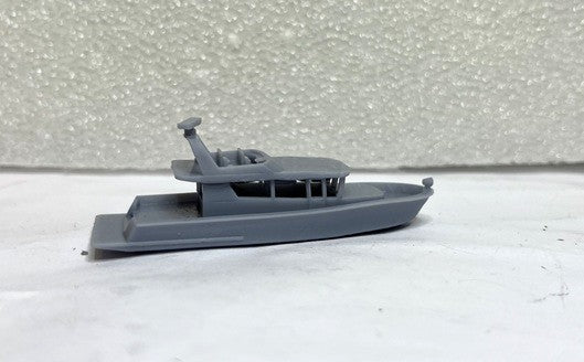 Das Modell ist mit einem SLA-Drucker erstellt und man kann die Druckmuster erkennen. Sie können das Motorboot farblich frei gestalten, Acrylfarbe oder Aqua color eignet sich besonders gut.